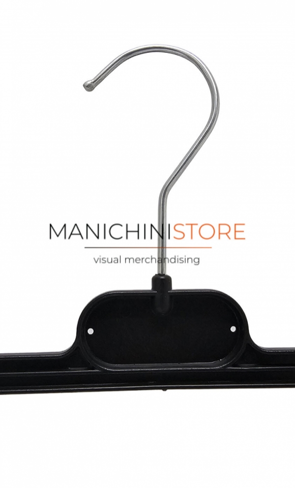 Functional and economic clamp coat hanger and skirt manufacturing pants Made in Italy black plastic.