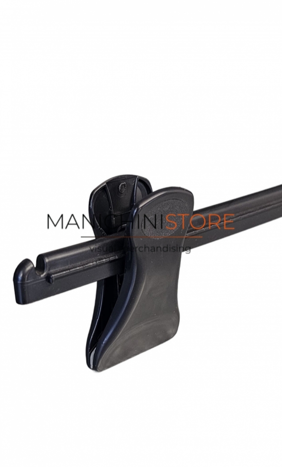 Manichini Store offers here a coat hanger with 36 cm pliers in black plastic. The article in question is sold inside a box of 280 pieces, but it is possible to request a smaller supply, which includes 70 or 140 pieces.