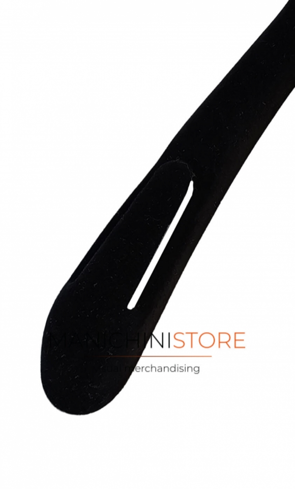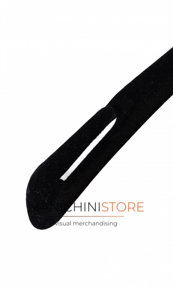 Hanger suitable for economic pinafores and t-shirts with shoulder flaps practices of manufacture "Made in Italy" covered in black velvet.