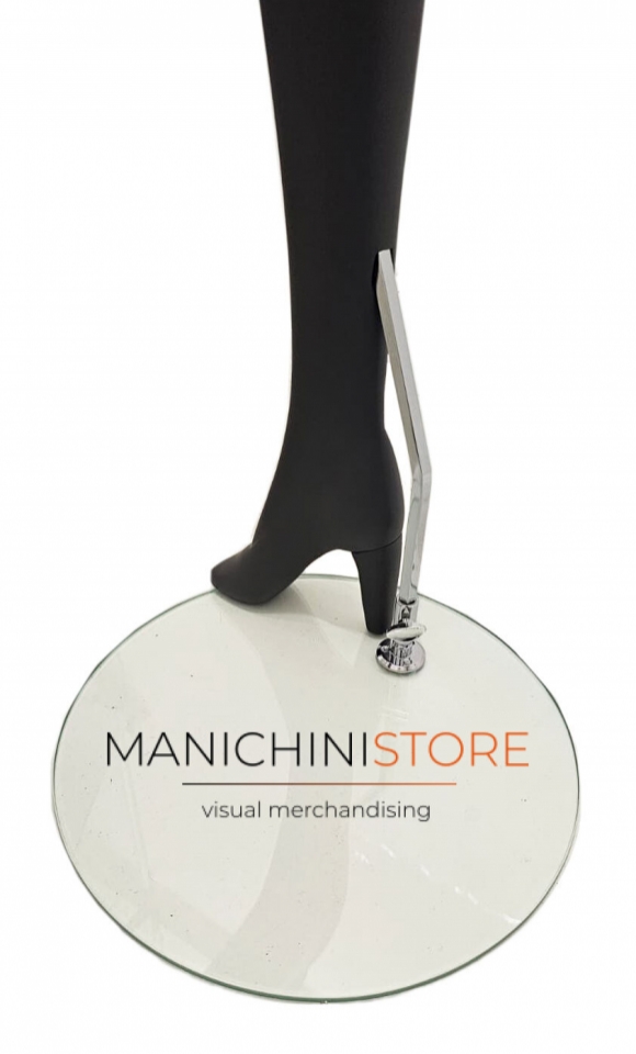 Attention to detail and sinuous and tapered lines characterize this collection with barely hinted features, equipped with a round base in tempered glass with a diameter of 38 cm with a calf attachment to be able to wear any type of footwear, and comfortable 10 cm removable heels.