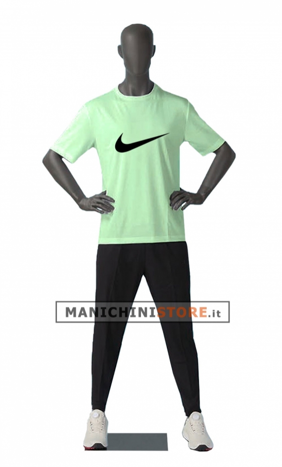 The mannequin is equipped with a 60x40 cm rectangular steel base, the posture and position of the arms cannot be changed.