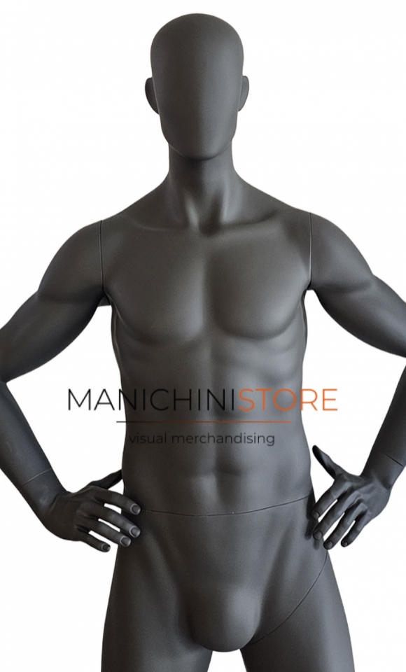 Ideal for dynamically setting up your shop windows, the mannequin has beautiful muscles.